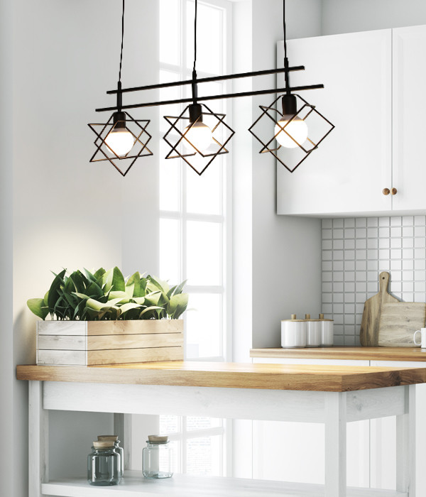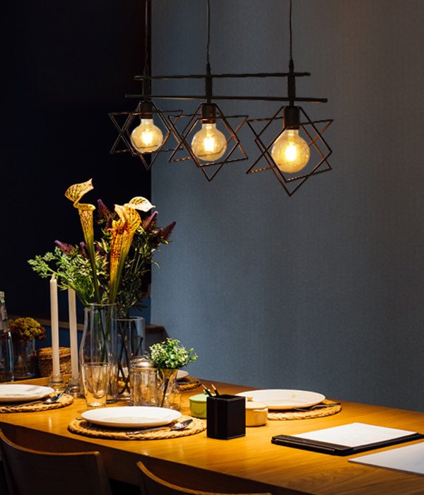 입체사각형 디자인의 식탁등